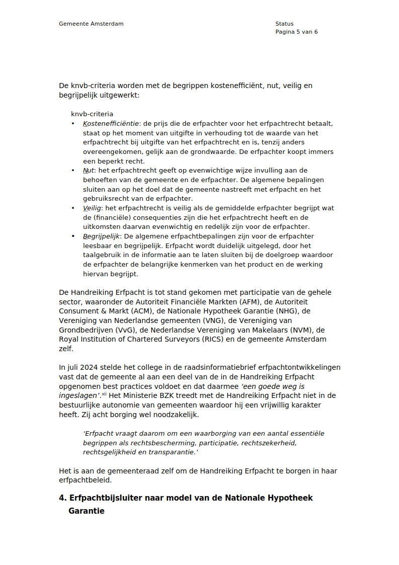 Een heel recht-toe-recht-aan notitie (HULDE ‼️ ), waarin voorgesteld wordt om de kaderstelling voor een goede consumentenbescherming bij erfpacht - op basis van de knvb-criteria: Kostenefficiënt, Nuttig, Veilig en Begrijpelijk - in de Verordening Grondbeleid vast te leggen.